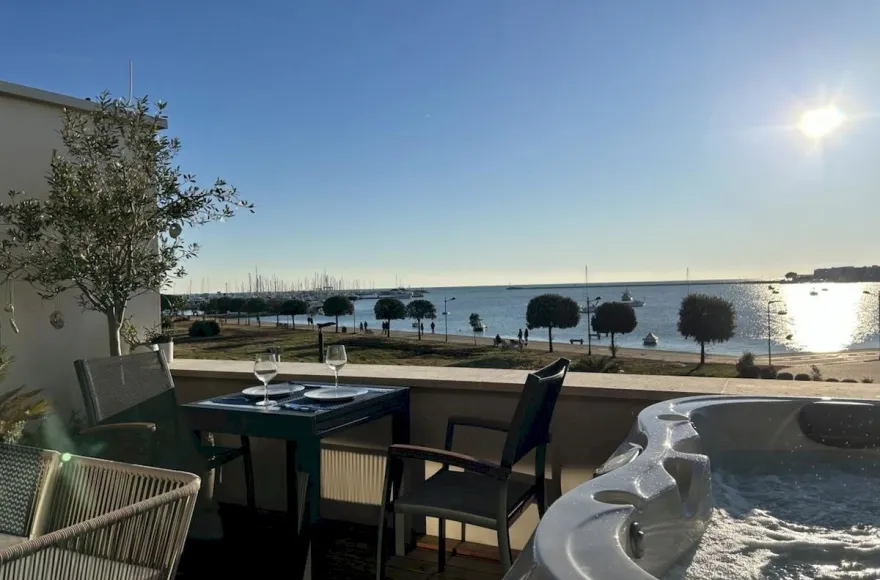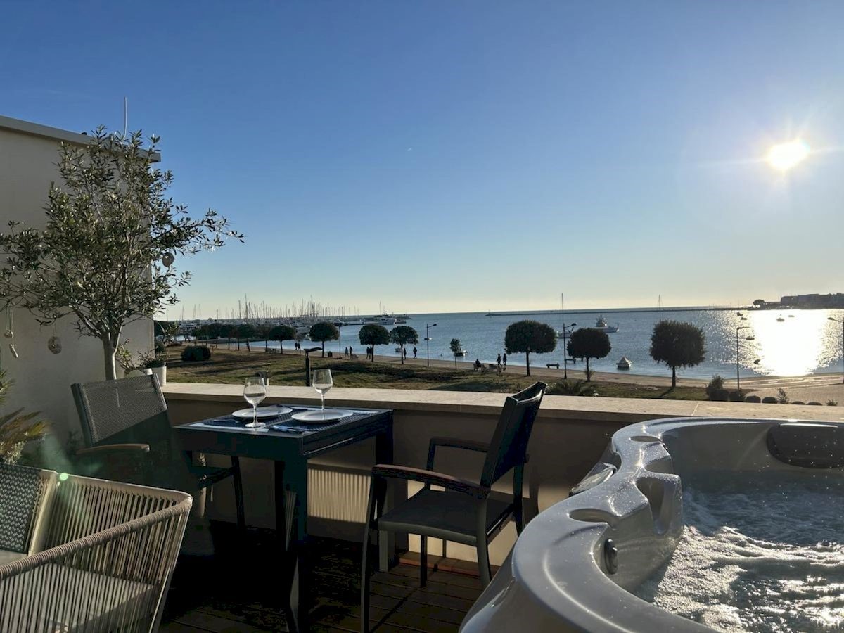 HORVÁT TENGERPARTI APARTMAN ISTRIA. UMAGBAN kínálunk, közvetlenül a tengerparton (50 m-re) egy kétszintes, (földszin és első emelet) a tágas, 112 nm-es  (nappali-konyha-étkező, 2 hálószoba, fürdőszoba-WC, terasz) apartmant parkolóhellyel. A tengeri illatok, a kilátás varázsa, mind az új tulajdonosra vár.