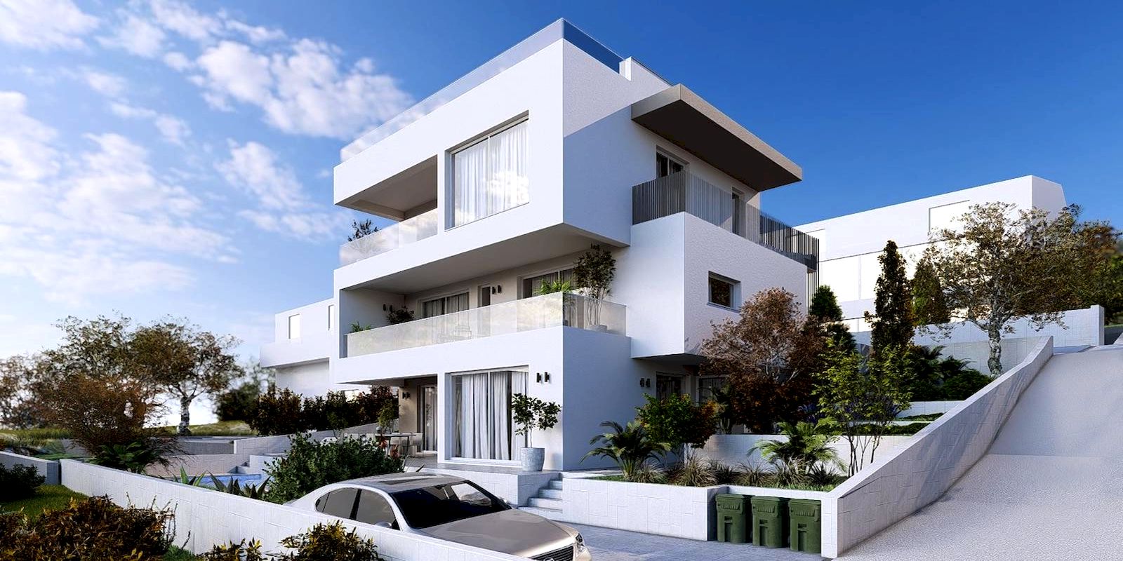 A nagy üvegfelületeknek és a déli tájolásnak köszönhetően a lakások világosak és kellemes mediterrán hangulatot biztosítanak.
