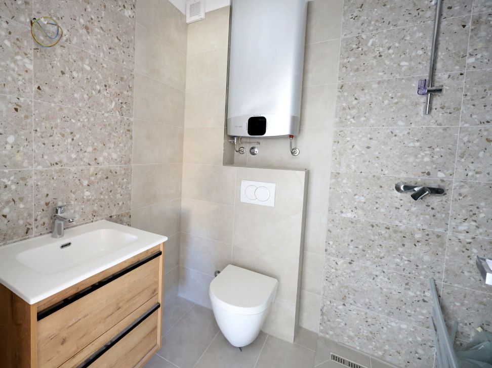 Ez az exkluzív, modern apartman Makarskában, Split vonzáskörzetében ideális választás azoknak, akik a tenger közelségét és a prémium kényelmi szolgáltatásokat egyszerre keresik. A 104 m² alapterület magában foglal egy tágas nappali-konyha-étkező részt, három kényelmes hálószobát és két teljes fürdőszobát. A lakás kiemelkedő eleme a nyitott, tengerre néző, tágas terasz, amely tökéletes kilátást és szabadtéri életvitelt biztosít.