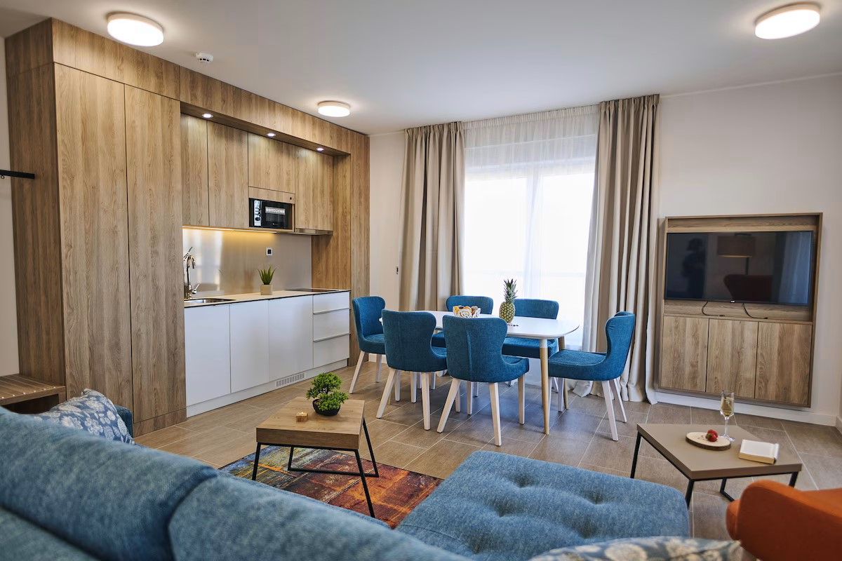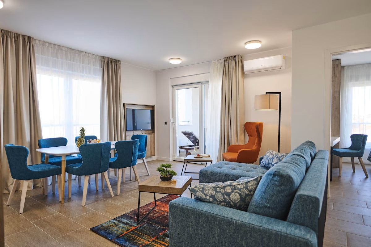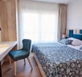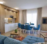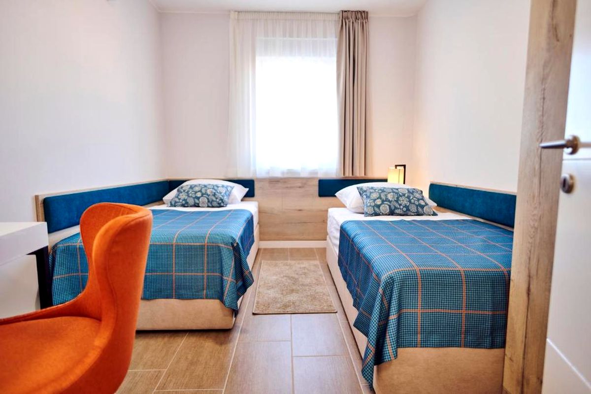 HORVÁT TENGERPARTI APARTMAN VODICE! 400 m-re a tengerparttól 81 nm-es második emeleti apartman (nappali-konyha-étkező, 2 hálószoba, 2 fürdőszoba, terasz kilátással) parkolóhellyel, eladó. Az apartmanok kialakítása, berendezése modern, szállodai színvonalú. Az udvarban medence, az épület földszintjén étterem, bár, edzőterem, valamint wellness is megtalálható a vendégek, tulajdonosok további kényelmére.