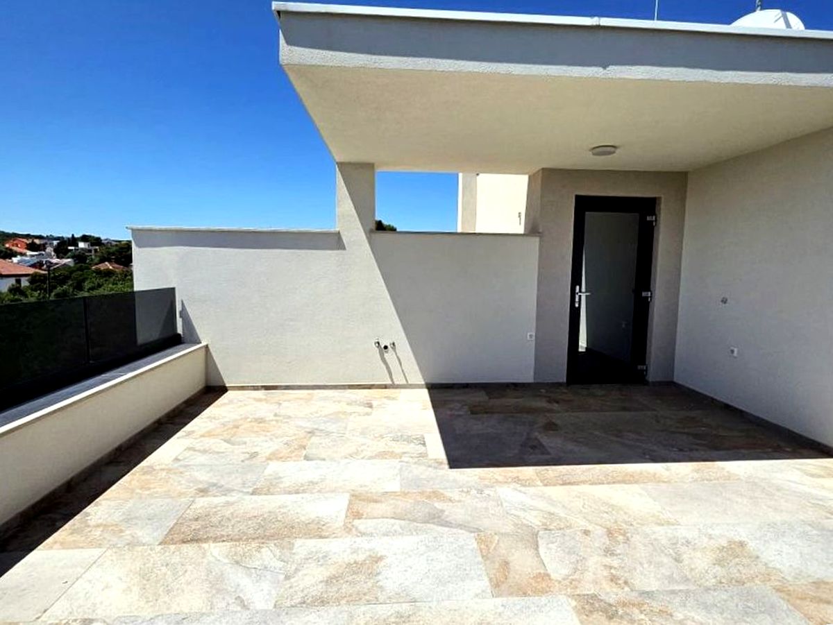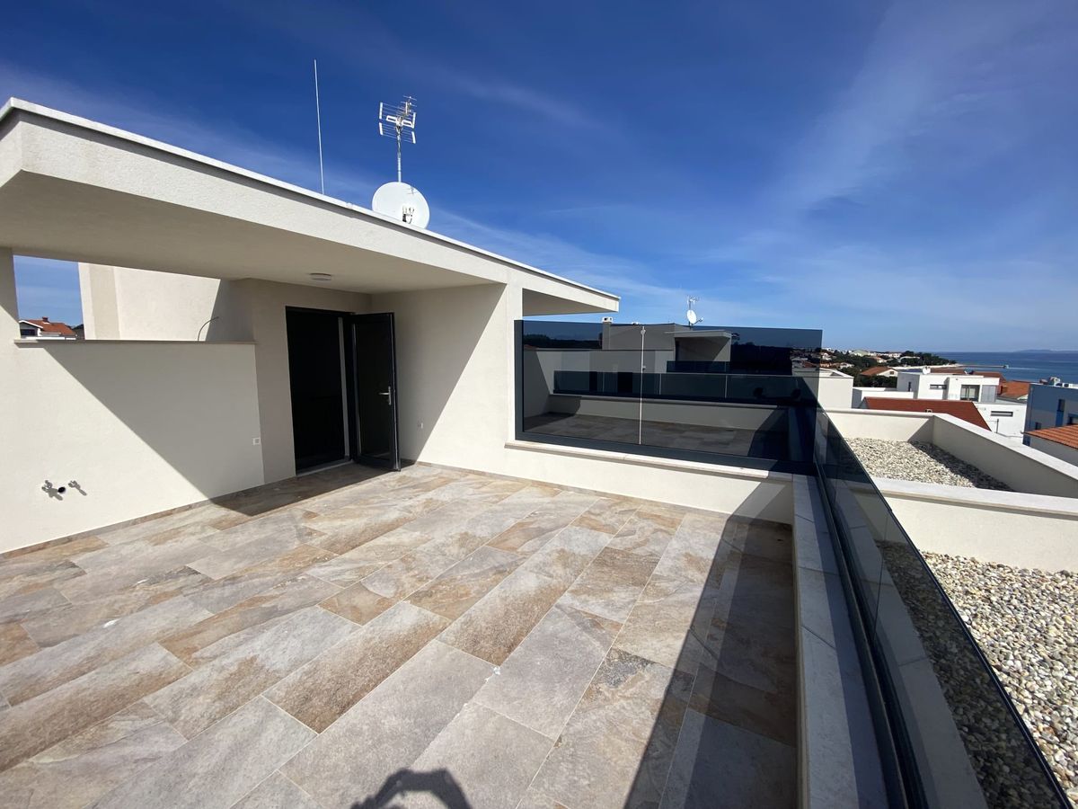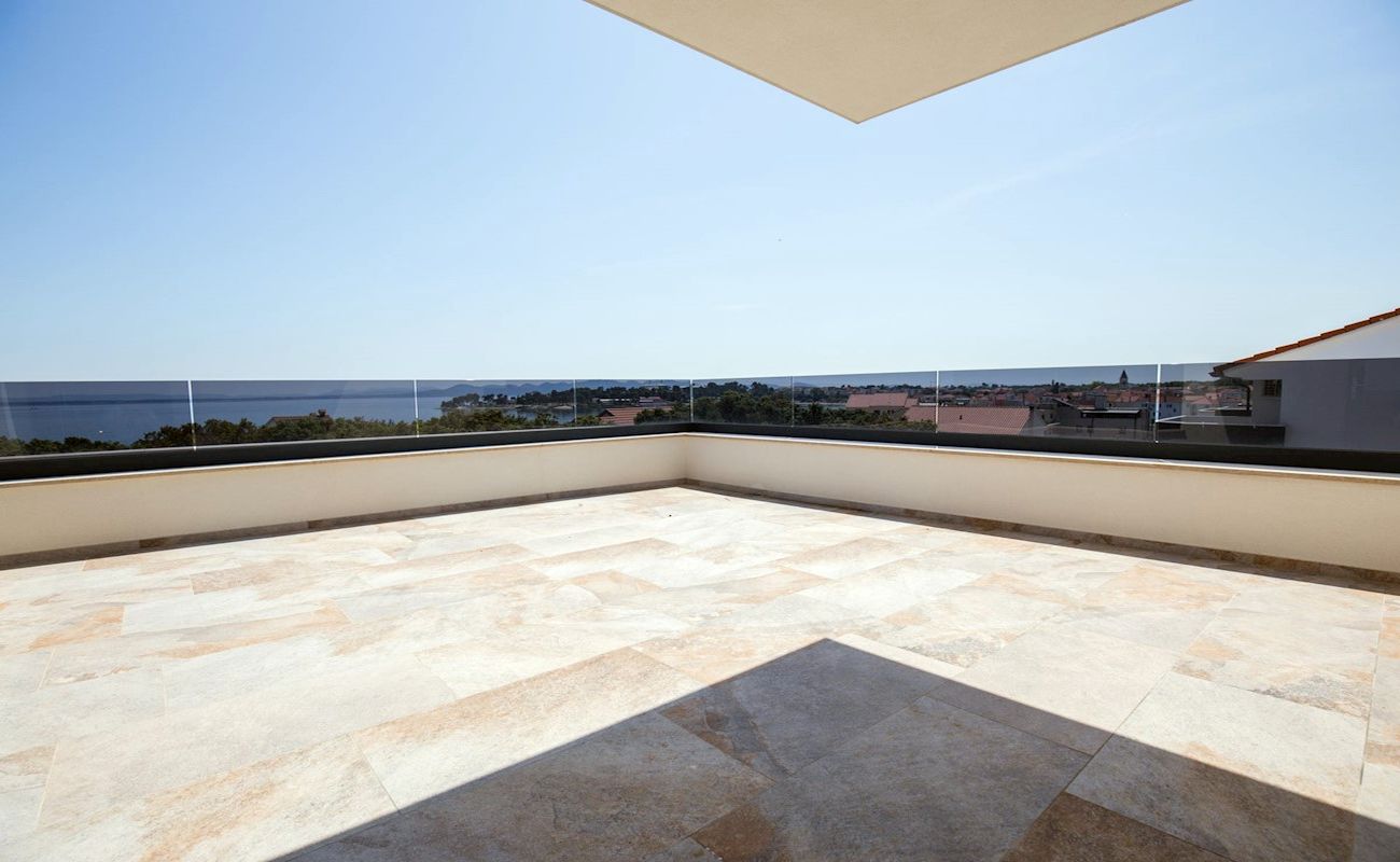 Eladó egy exkluzív, új építésű horvát eladó ingatlan Zadar közelében, mindössze 150 méterre a tengertől és a strandtól, csendes, rendezett környezetben. A modern, háromszintes épületben található 110 nm-es eladó apartman kiváló választás mindazok számára, akik tenger közeli, panorámás nyaralót vagy biztos befektetési célú ingatlant keresnek a horvát Adrián.