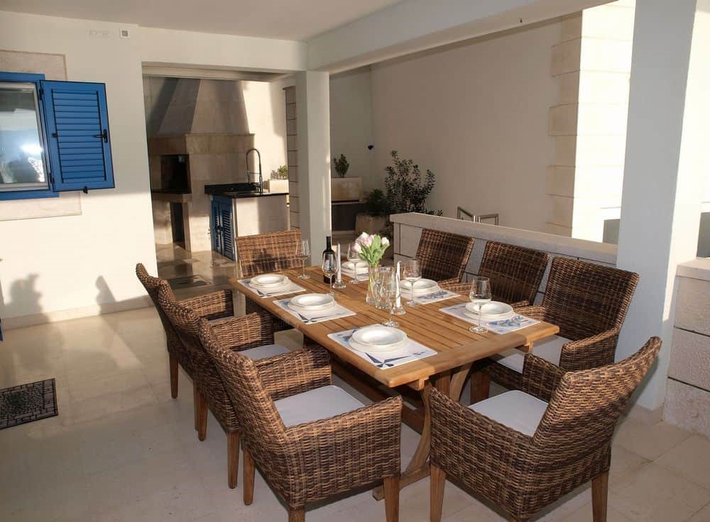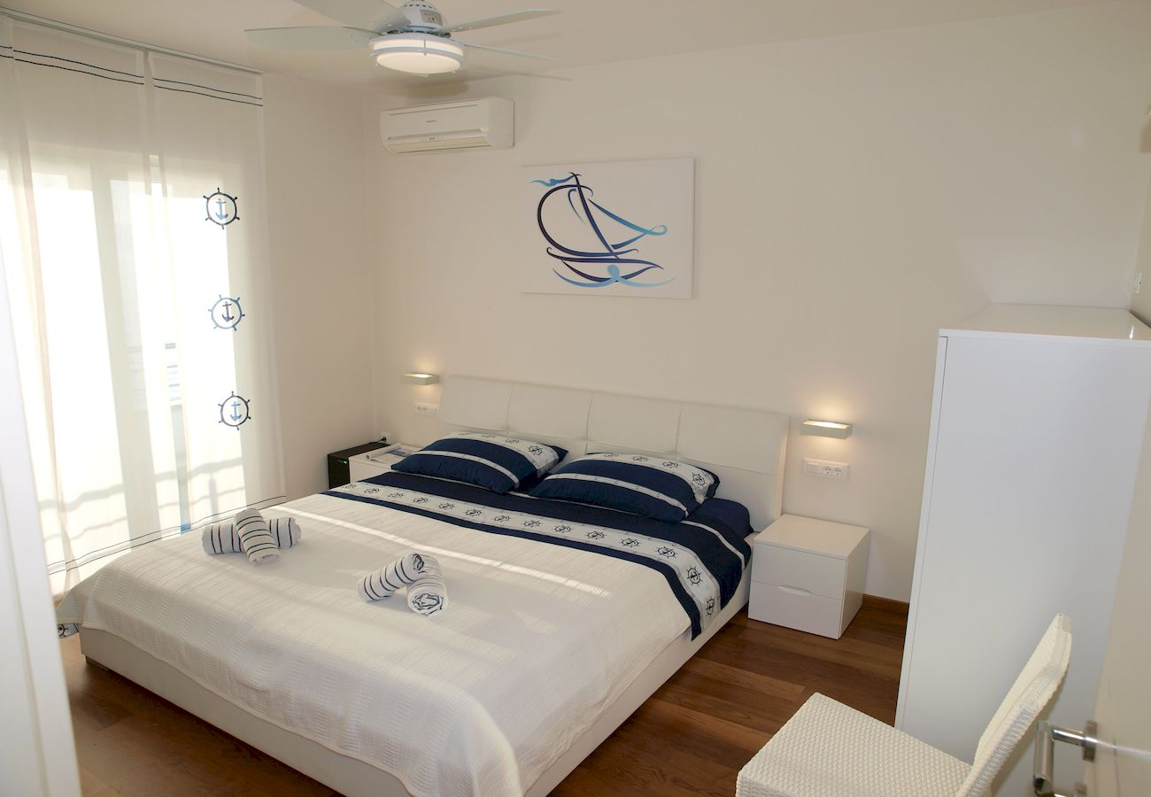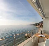 ELADÓ HORVÁT TENGERPARTI INGATLAN MAKARSKA! SPLIT régióban, a makarskai riviérán, 5 m-re a tengertől, 185 nm-es panorámás (fsz.: nappali-konyha-étkező, hálószoba, fürdőszoba-WC, terasz; em.: 3 hálószoba, fürdőszoba-WC) ház 155 nm-es telken garázzsal eladó. Az ingatlanban mindegyik szoba a tegerre néz, a teraszok és a kültéri grillkonyha is.