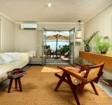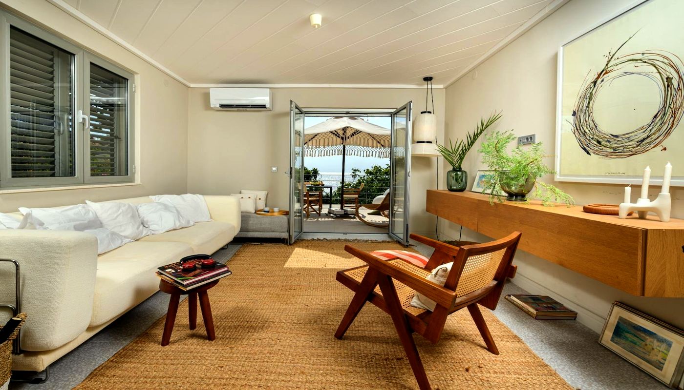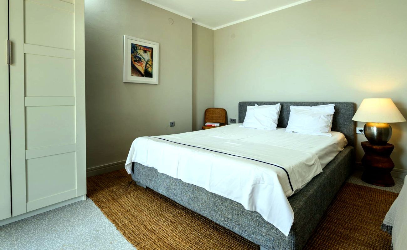 A két szintet egy hangulatos belső lépcső köti össze. Az emeleten két hálószoba és egy fürdőszoba kapott helyet. A déli fekvésű hálószobából közvetlen kijárat nyílik az erkélyre, ahonnan még nyitottabb kilátás élvezhető a tengerre és a szigetekre.