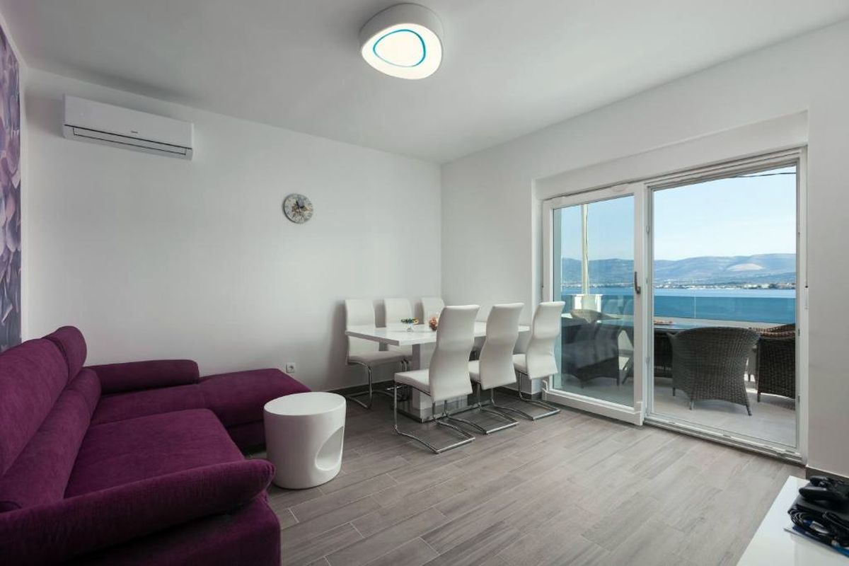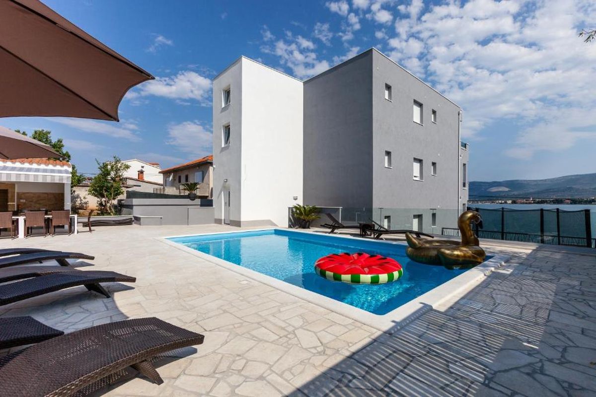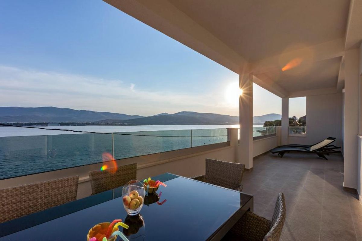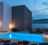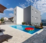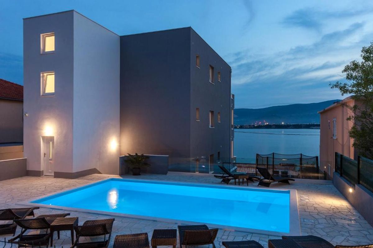 ELADÓ HORVÁT TENGERPARTI INGATLAN-TROGIR: A tengertől 30 m-re, az első sorban (Fsz.: nappali-konyha-étkező, 1 hálószoba, fürdőszoba-WC, terasz; I. em.: nappali-konyha-étkező, 2 hálószoba, fürdőszoba-WC, terasz; II. em.: nappali-konyha-étkező, 2 hálószoba, fürdőszoba-WC, terasz) apartmanvilla, panorámás kilátással a tengerre, medencével, játszóudvarral eladó.
