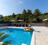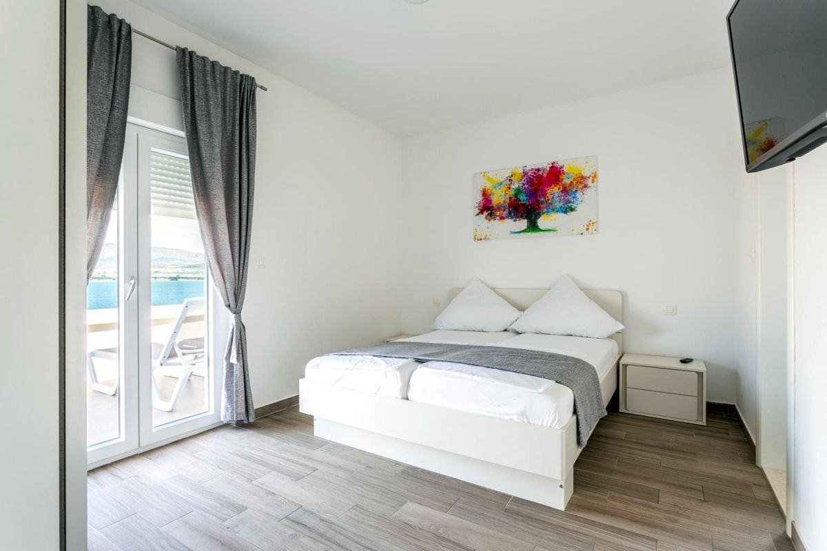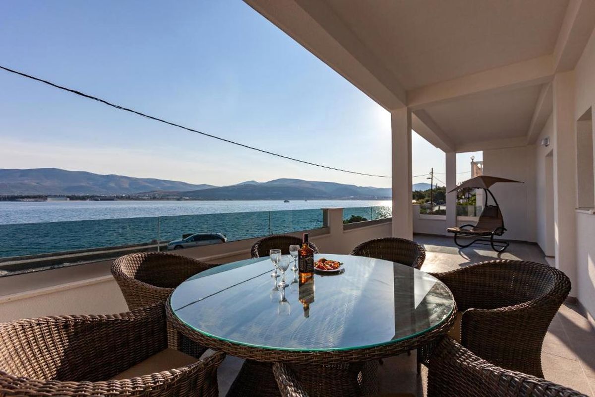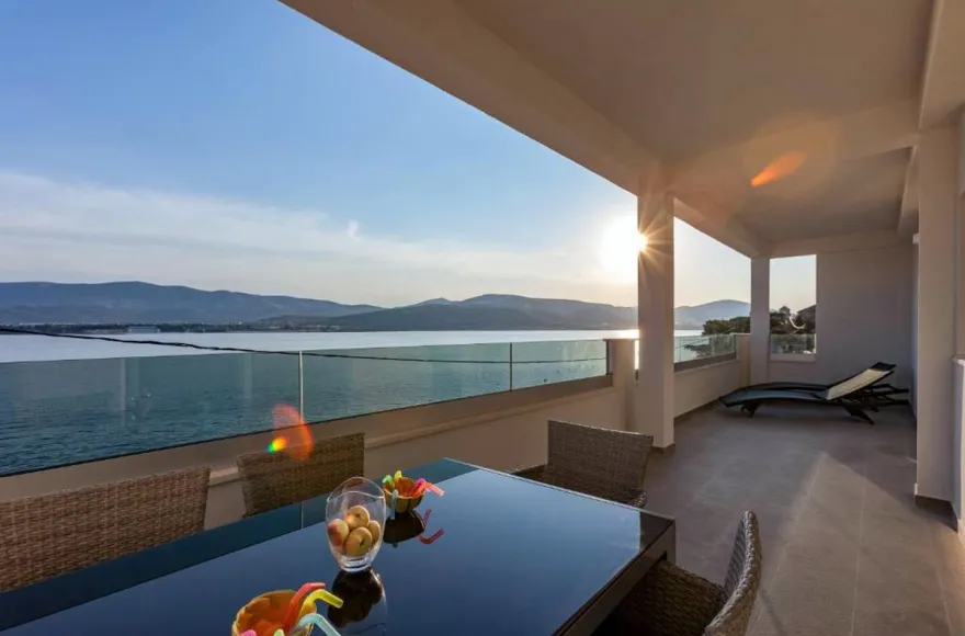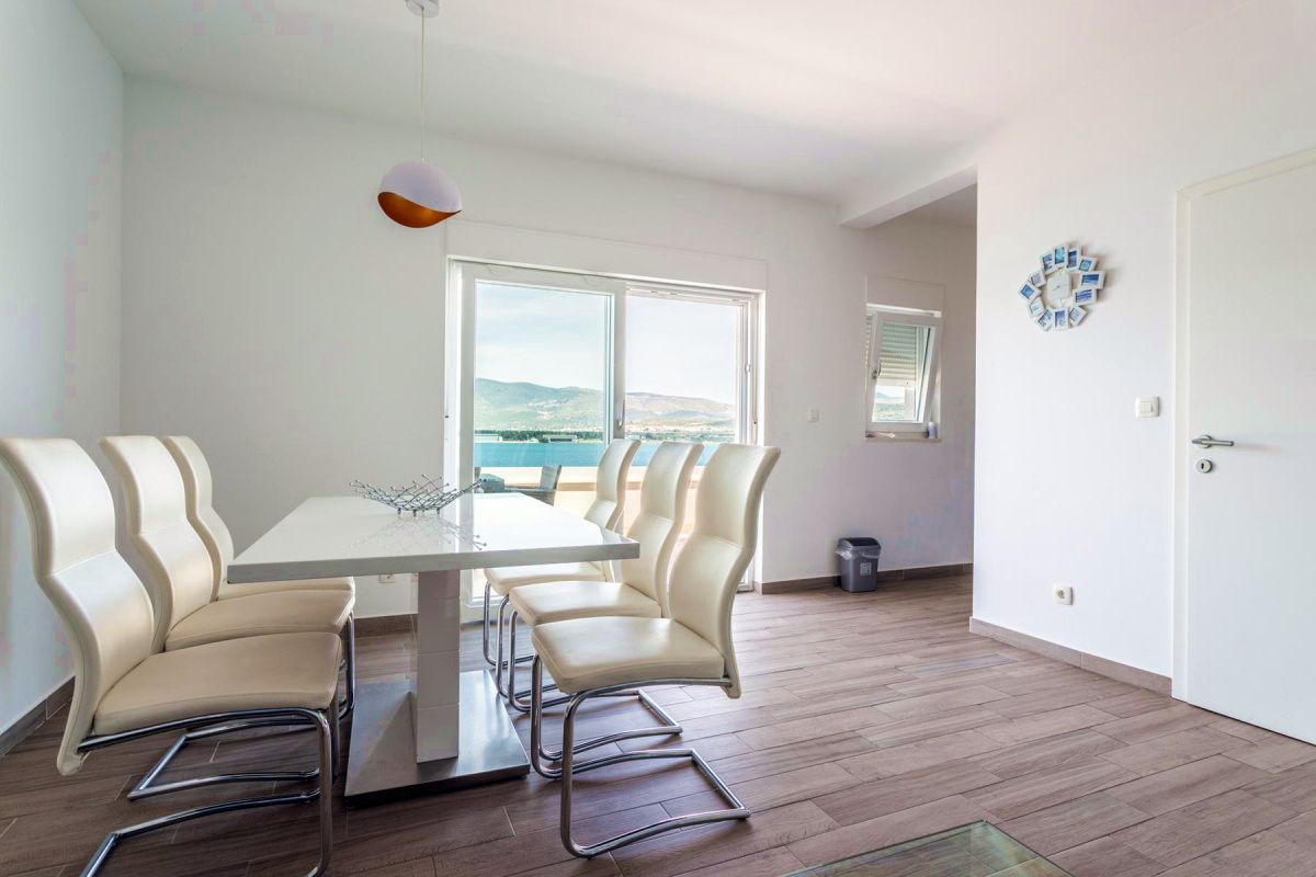 ELADÓ HORVÁT TENGERPARTI INGATLAN-TROGIR: A tengertől 30 m-re, az első sorban (Fsz.: nappali-konyha-étkező, 1 hálószoba, fürdőszoba-WC, terasz; I. em.: nappali-konyha-étkező, 2 hálószoba, fürdőszoba-WC, terasz; II. em.: nappali-konyha-étkező, 2 hálószoba, fürdőszoba-WC, terasz) apartmanvilla, panorámás kilátással a tengerre, medencével, játszóudvarral eladó.