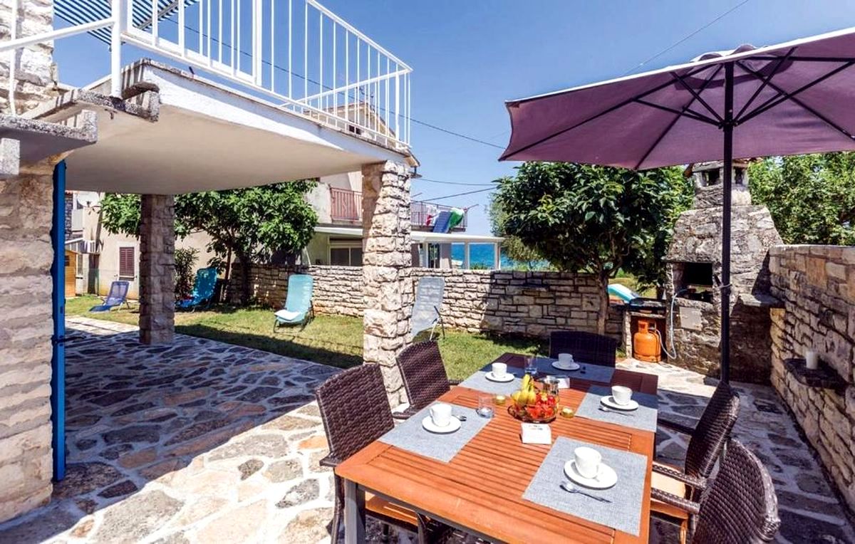 HORVÁT ELADÓ INGATLAN! UMAG, közelében tengeri kilátással 90 nm-es, kétszintes kőház, 230 nm-es telken eladó. (Fsz.: nappali-konyha-étkező, fürdőszoba-WC, terasz; em.: 2 hálószoba, fürdőszoba-WC, terasz kilátással a tengerre. A tengerpart közeli jó állapotú kőház magában hordozza a kellemes adriai családi nyaraló kényelmes udvarral, vagy akár kreatív fejlesztéssel további elképzelések koncepcióját is.