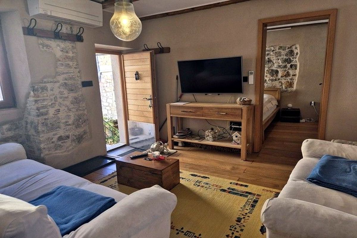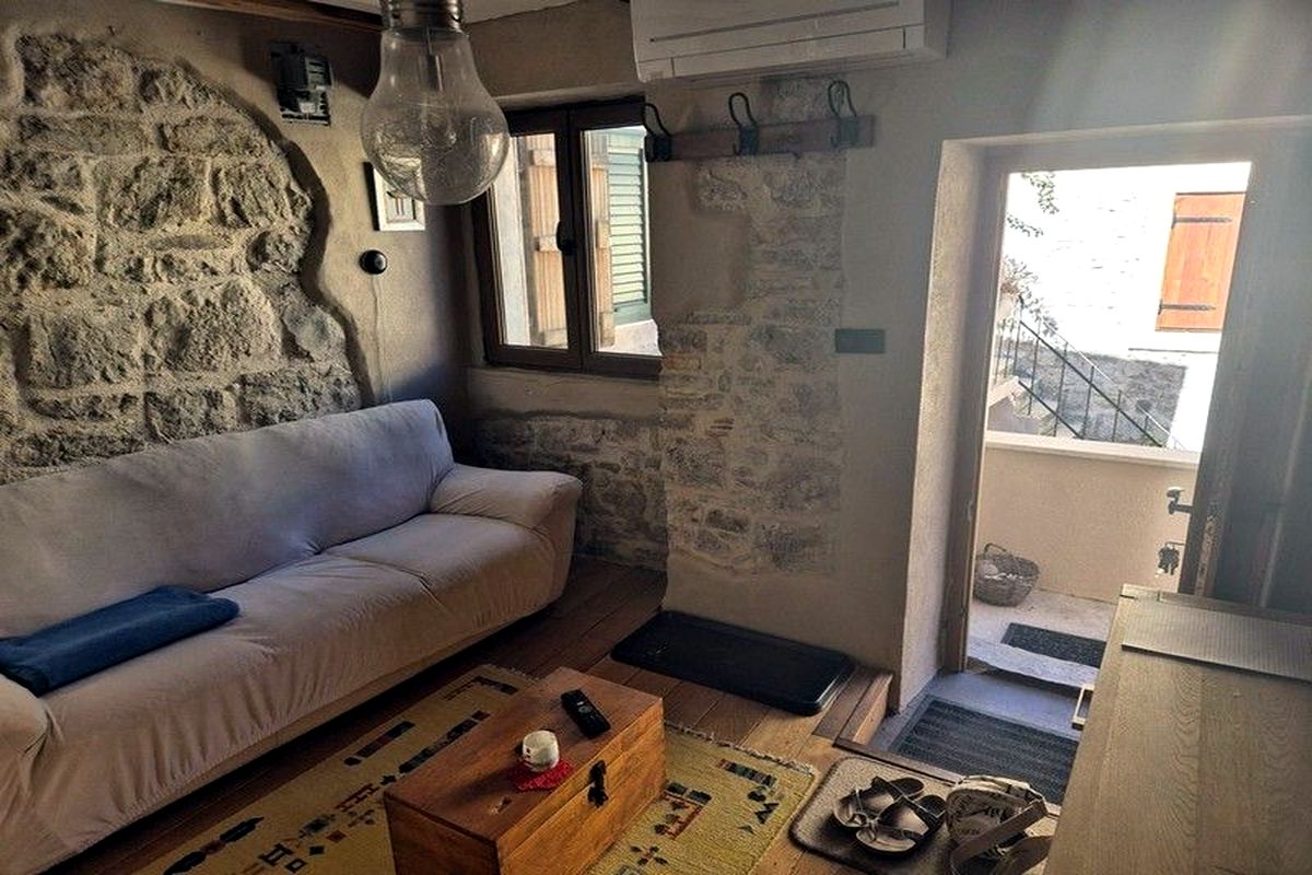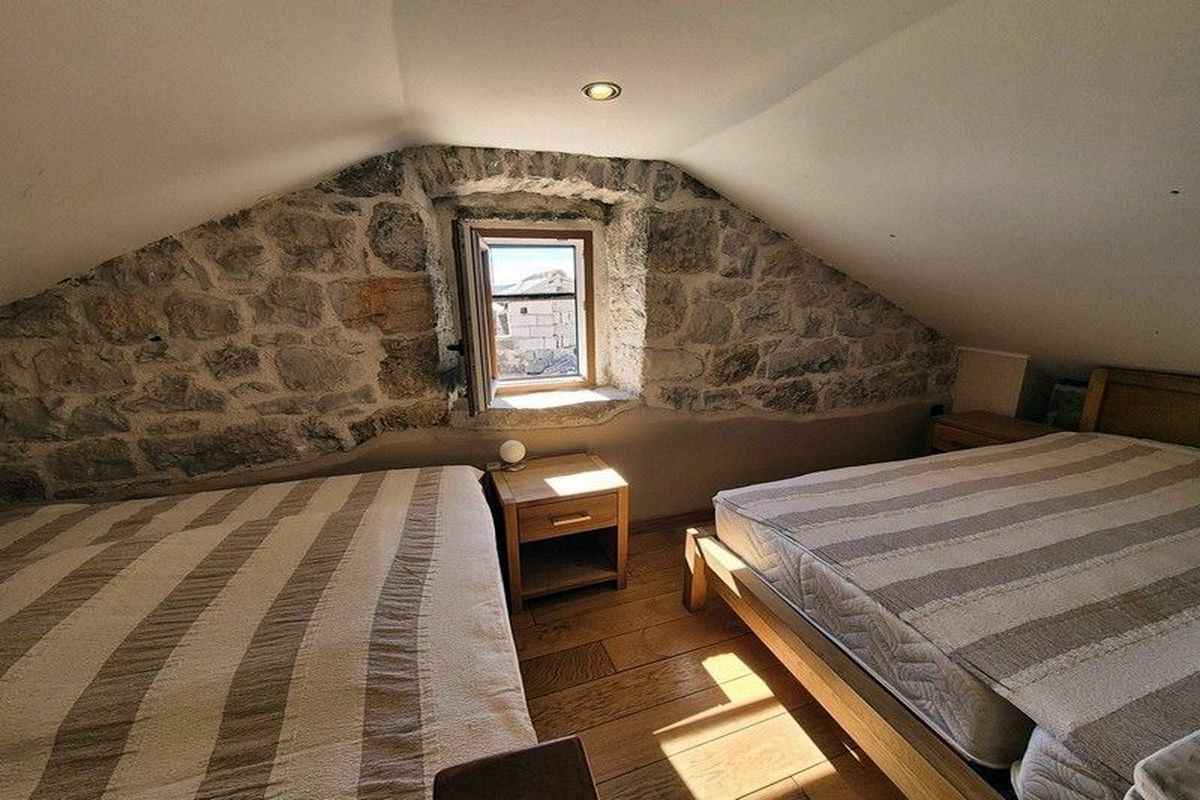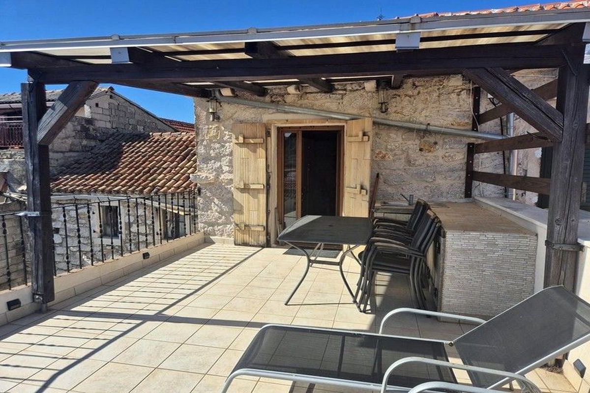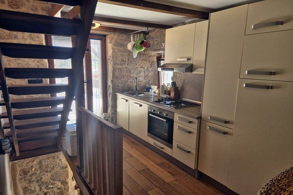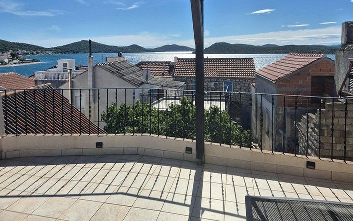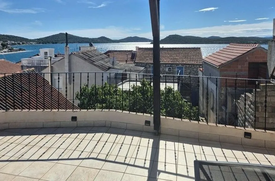 ELADÓ HORVÁT TENGERPARTI INGATLAN! VODICE közelében, MURTER szigetén (hídon keresztül elérhető) A tengertől 150 m-re kínálunk egy 150 nm-es autentikusan felújított dalmát kőházat tetőterasszal és kilátással. Az épület felosztása: fsz.: nappaliszoba, 1 hálószoba; I. em.: konyha-étkező, hálószoba, fürdőszoba-WC; tetőtér: hálószoba, tágas terasz. A nagy teraszról kilátás nyílik a tengerre és a környékre.