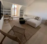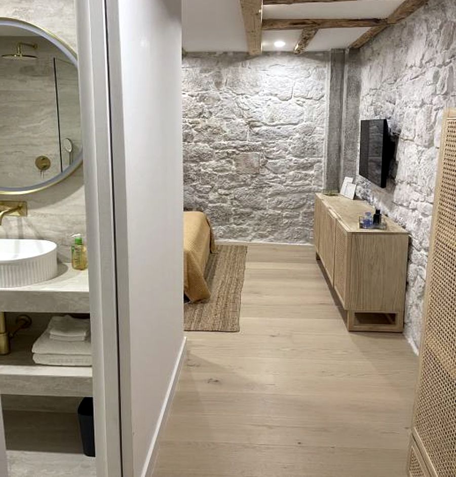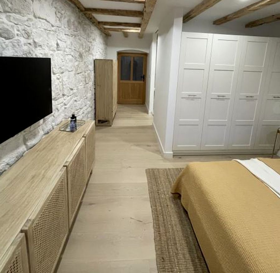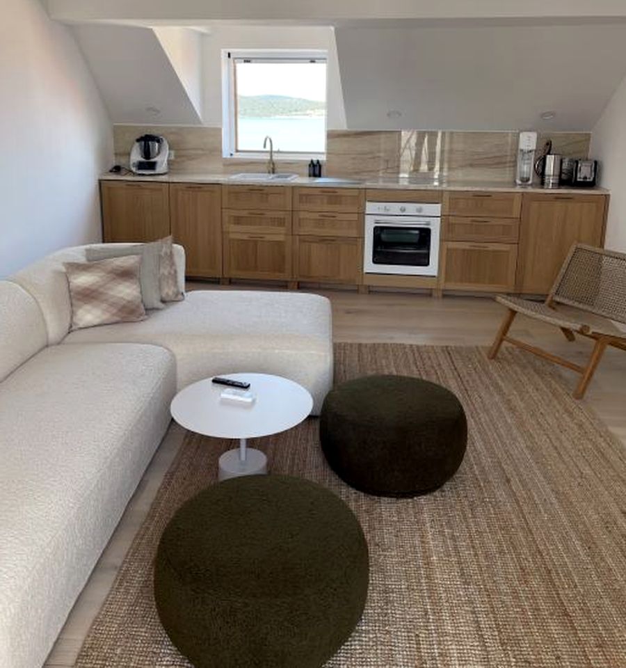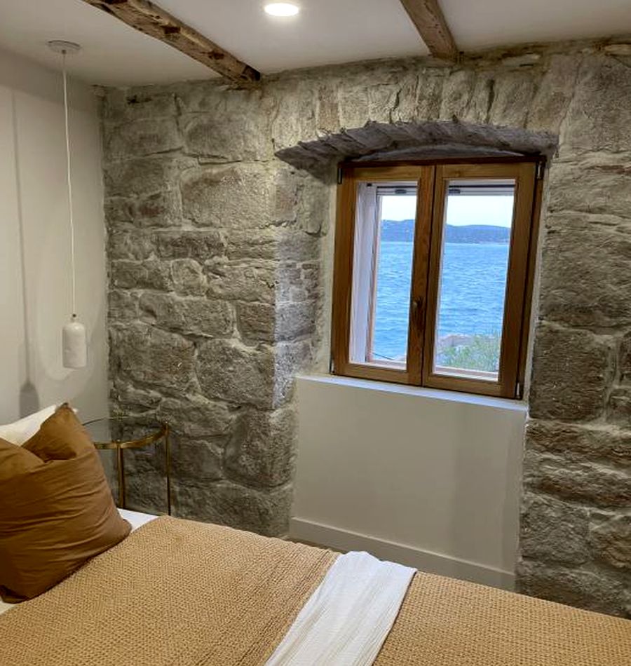 ELADÓ HORVÁT TENGERPARTI APARTMAN! VODICE közelében, MURTER szigetén (hídon keresztül elérhető) a tengertől 70 m-re, három szintes, 100 nm-es, kőház, tetőterasszal, 15 nm-es udvarral eladó. A légkondicionált épület felosztása: Fsz. -pince-tároló; I. em. -hálószoba, fürdőszoba-WC; II. em. nappali-konyha-étkező, terasz. A kőépület Murter egyik turisták által is kedvelt településén, a második sorban áll a tengertől. A horvát ingatlanpiacon keresett a mediterrán tengerpart középkori házainak a mai kor elvárásai alapján felújított darabjai.
