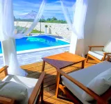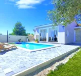 ELADÓ-HORVÁT-TENGERPARTI-HÁZ-VILLA ! ZADAR- VIR SZIGETÉN, (hídon keresztül elérhető) A tengertől 750 m-re nyugodt környezetben, 98 nm-es igényes villa medencével eladó. (Felosztás -nappali-konyha-étkező, 3 hálószoba, 2 fürdőszoba-WC, tágas terasz medencével, 640 nm-es szépen gondozott telekkel.