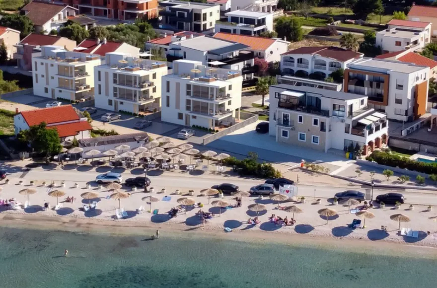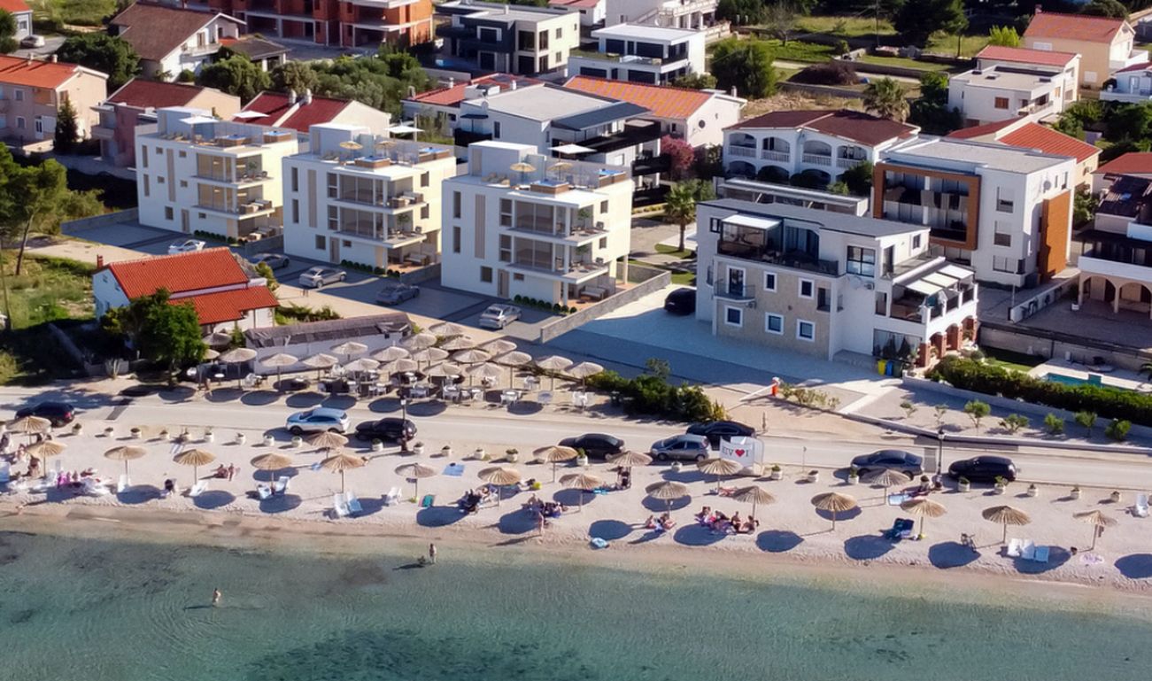 ELADÓ HORVÁT TENGERPARTI INGATLAN VIR ! ZADAR  közelében VIR SZIGETÉN, (hídon keresztül elérhető) déli fekvésű, a tengertől 50-80 m-re, épülő 300 nm-es, 4 lakásos igényes apartmanházak, eladók. A lakások alapterülete 45-95-nm, az első és második emeletiekhez tetőterasz, valamint mindegyikhez tartozik  tároló és parkolóhely.