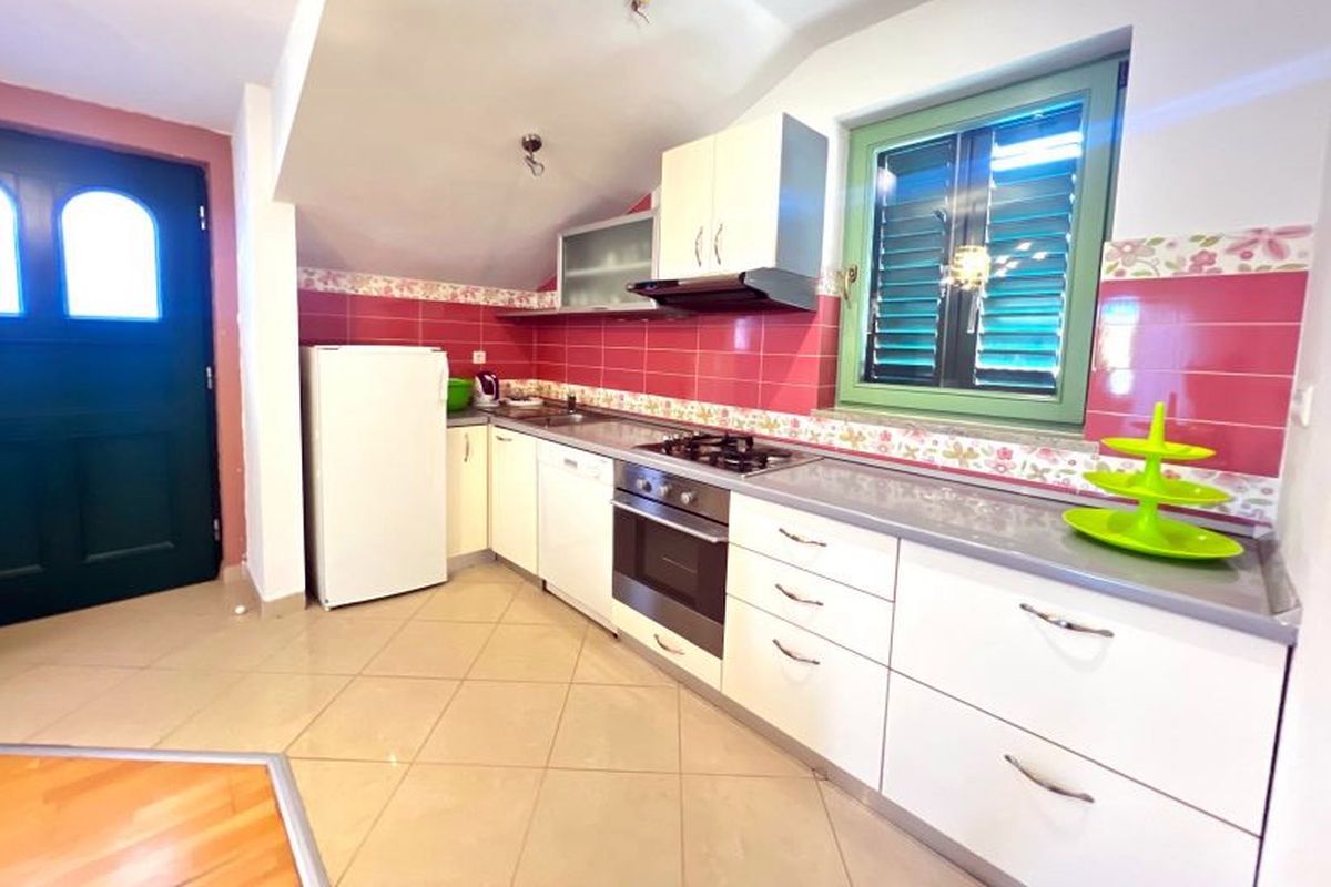 HORVÁT TENGERPARTI INGATLAN ELADÓ! ZADAR- VIR SZIGETÉN, (hídon keresztül elérhető) a tengertől, strandtól 70 m-re, déli fekvésű kétszintes, két apartmanos, 80 nm-es (Fsz.: - nappali-konyha-étkező, 2 hálószoba, fürdőszoba-WC terasz; em.: nappali-konyha-étkező, 2 hálószoba, fürdőszoba-WC terasz) ház, 200 nm-es telken eladó. Vezetékes víz, csatorna.