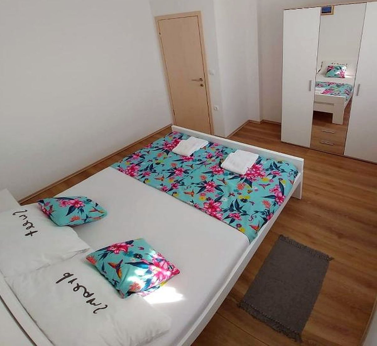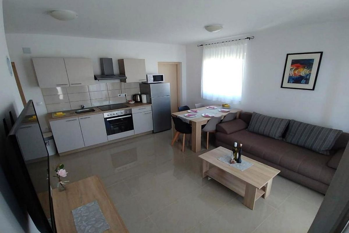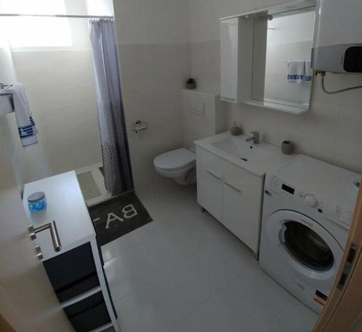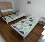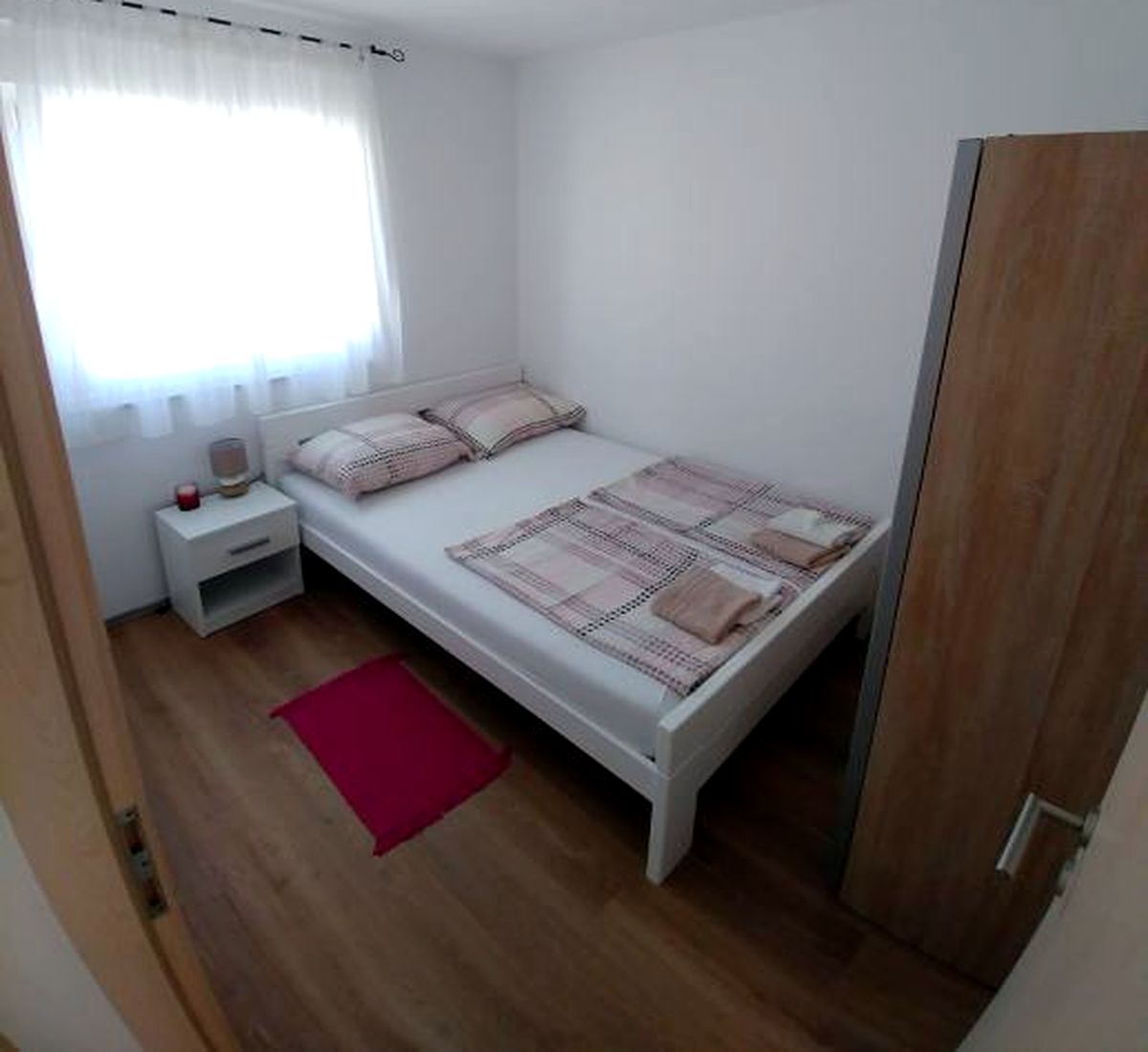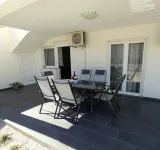 ELADÓ HORVÁT INGATLAN! ZADAR közelében, a tengertől 280 m-re, kétszintes, 120 nm-es, iker jellegű (saját Hrsz.) 3 apartmanos (Fsz.: 2db  apartman -nappali-konyha-étkező, 1 hálószoba, fürdőszob-WC, terasz; em.: nappali-konyha-étkező, ) ház 180 nm-es telken eladó.